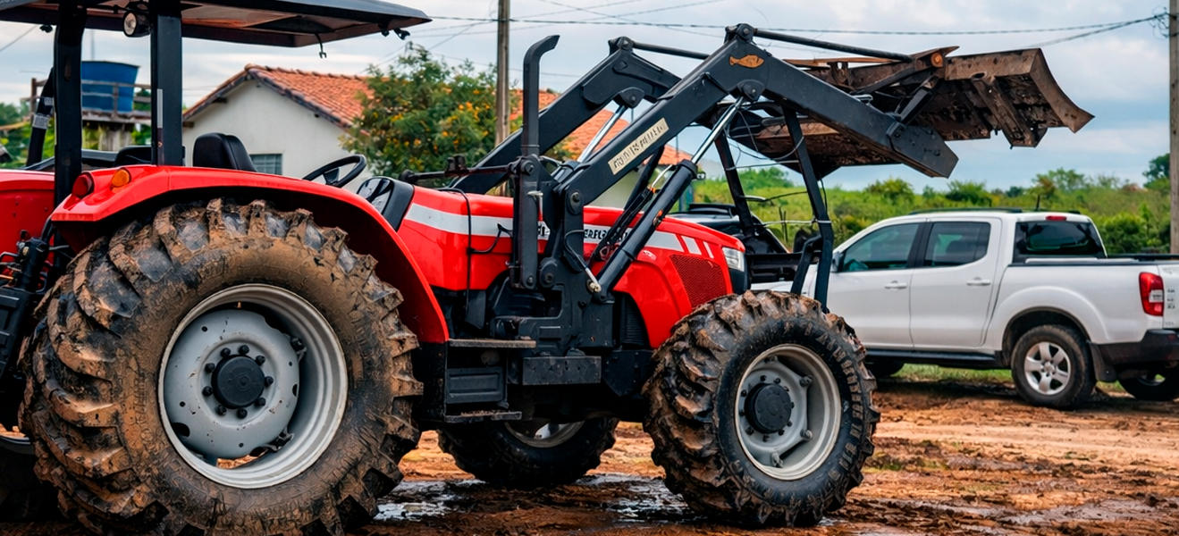Essa operação do trator com tração 4x4 para atividades como preparo do solo, nivelamento, transporte de insumos e apoio às operações agrícolas, além da utilização de implementos compatíveis, garantindo eficiência operacional, segurança, resistência e alto desempenho nas atividades rurais.